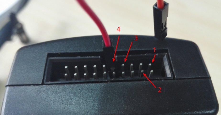- 1所指排针与飞控的VCC相连(如果飞机自己供电,可以不连接)