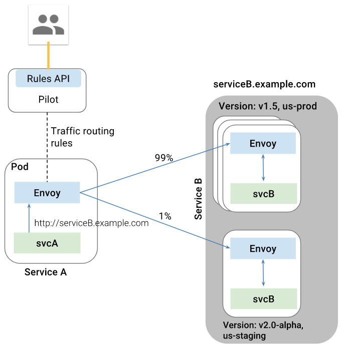 示例一:将 10% 请求发送到 v2 版本而其余 90% 发送到 v1 版本