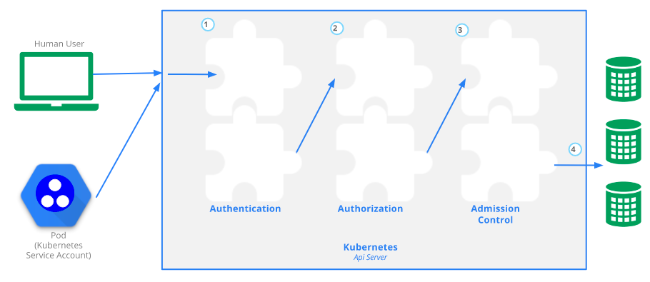 认证之后的请求就到了授权模块。跟认证类似,Kubernetes也支持多种授权机制,并支持同时开启多个授权插件(只要有一个验证通过即可)。如果授权成功,则用户的请求会发送到准入控制模块做进一步的请求验证;而对于授权失败的请求则返回HTTP 403.
