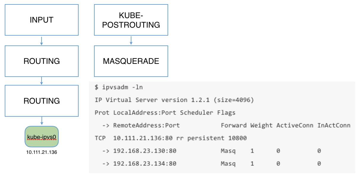 - ipvs:为解决iptables模式的性能问题,v1.8新增了ipvs模式,采用增量式更新,并可以保证service更新期间连接保持不断开