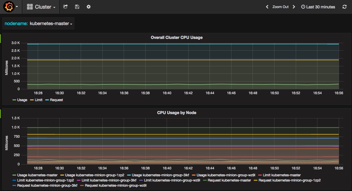 Grafana is running at https://kubernetes-master/api/v1/proxy/namespaces/kube-system/services/monitoring-grafana